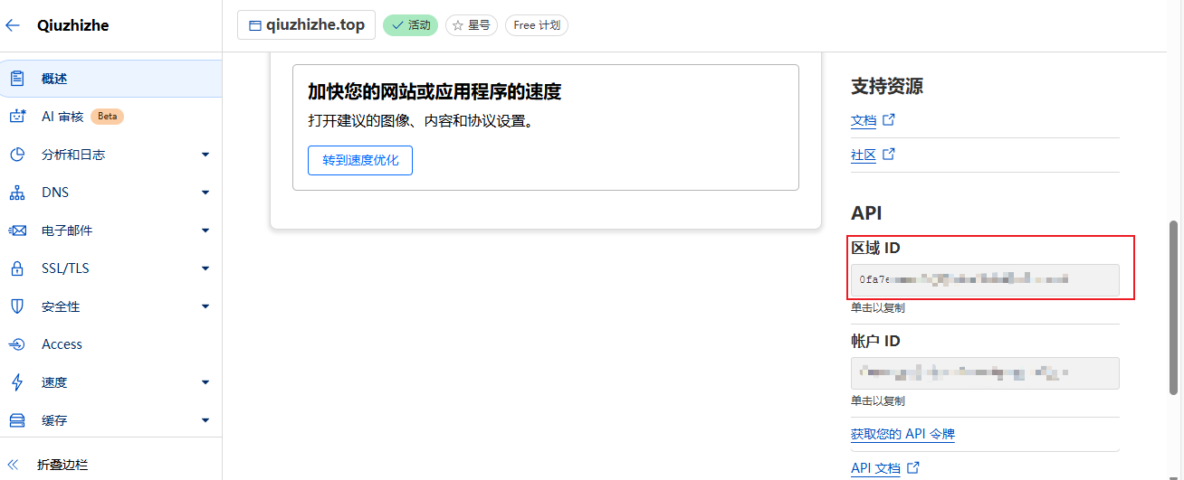 针对上面说的两个需要api获取的id,我们需要使用cloudflare的api来获取
